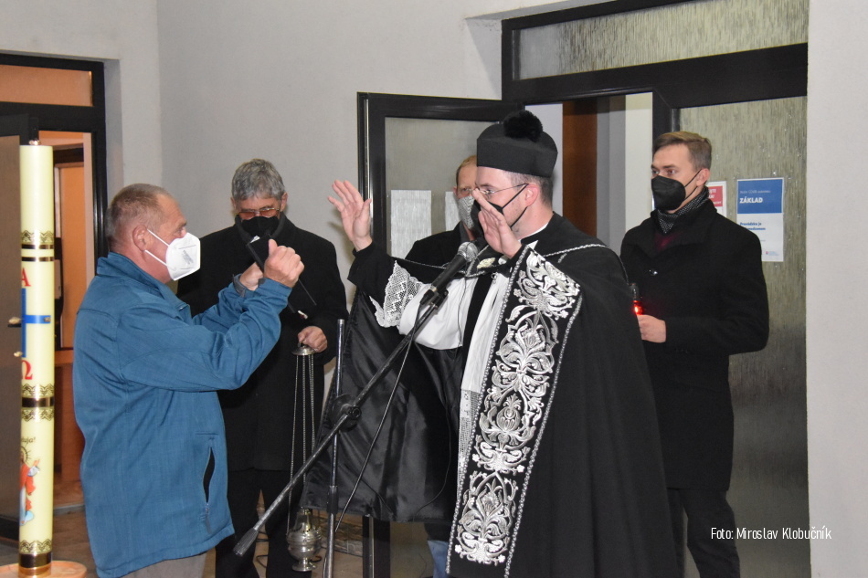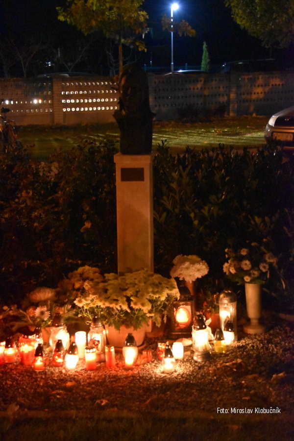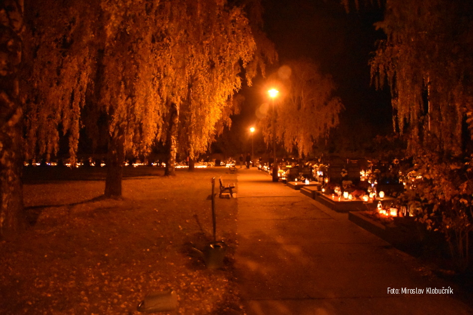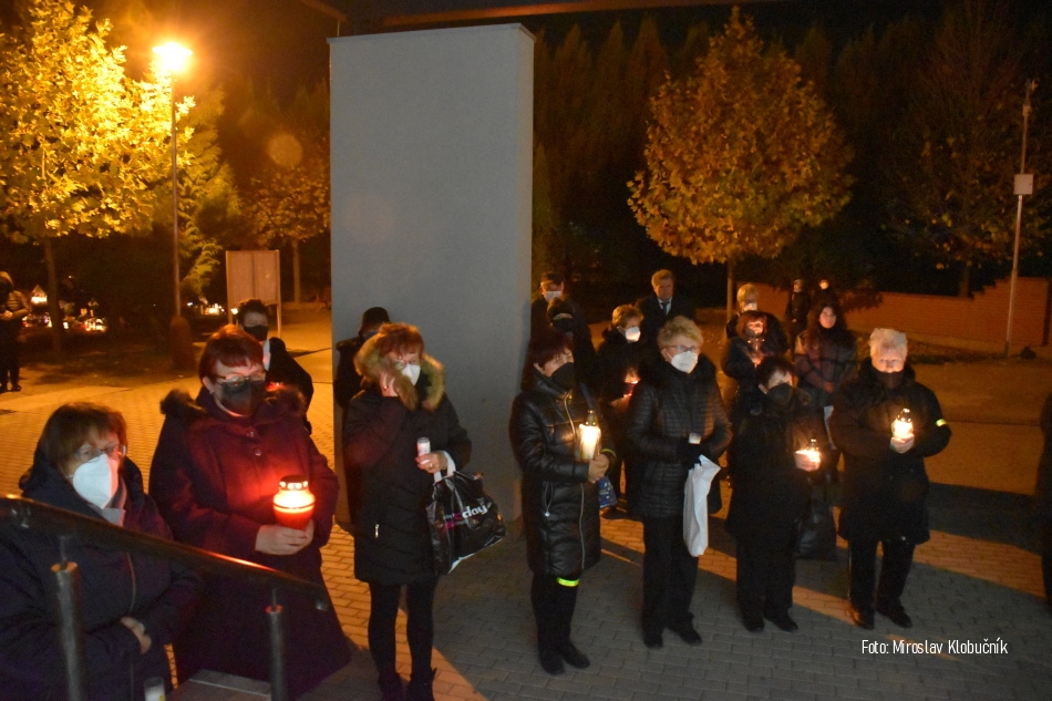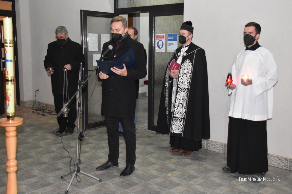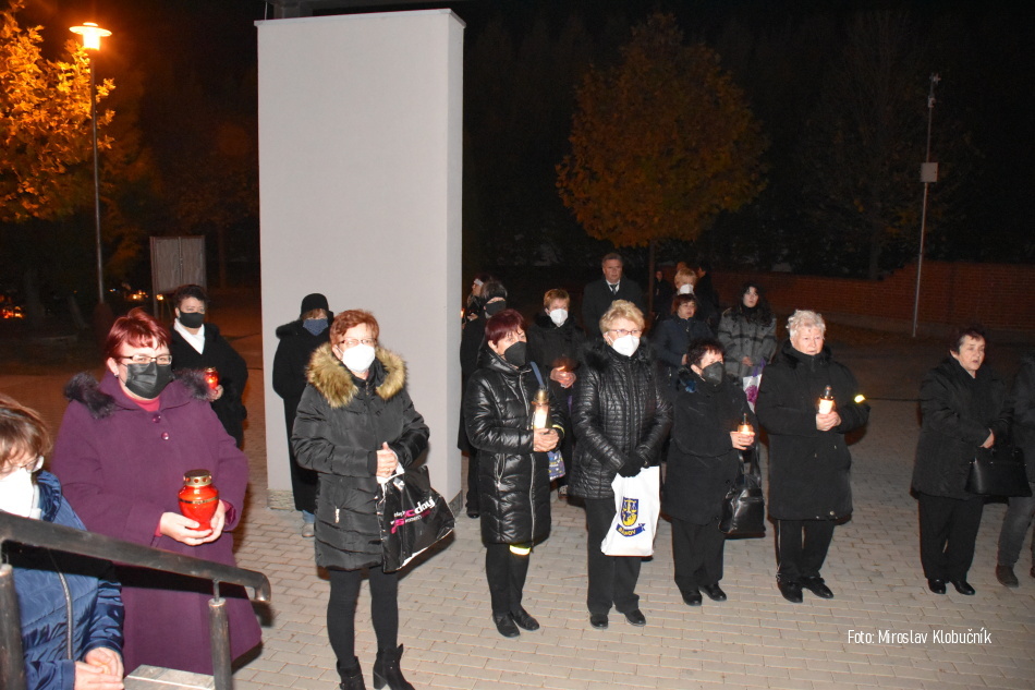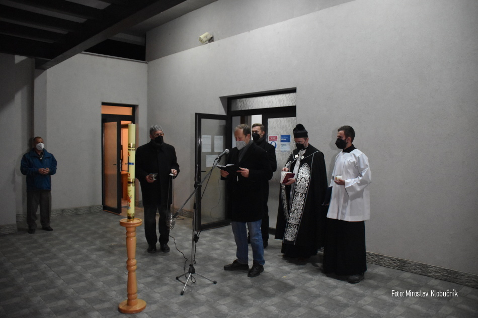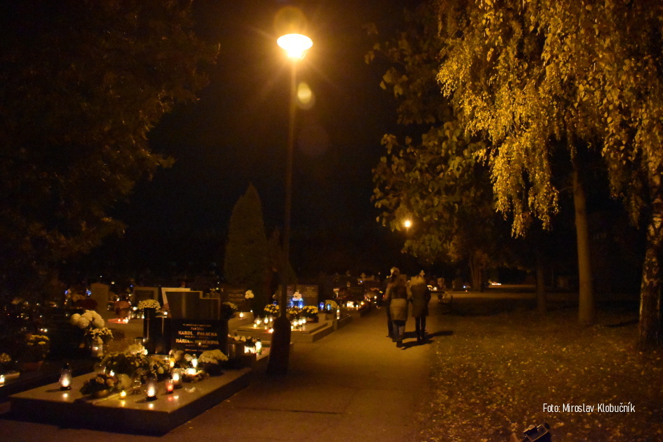 Dušičková pobožnosť so sviečkami sa uskutočnila v pondelok 1. novembra 2021 o 18:00 hod. na novom cintoríne pri Dome smútku a nádeje Bánov. Pobožnosť viedol správca farnosti PaedDr. ThLic. Peter Čieško a svoj príhovor predniesol tiež pán starosta PhDr. Miloš Rybár. Foto: M. Klobučník