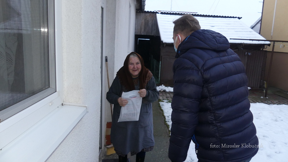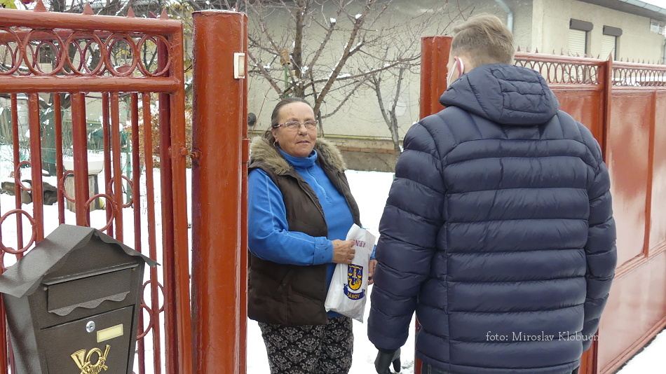 Ani tento rok nám epidemiologická situácia neumožnila vzájomne sa stretávať. Z tohto dôvodu, starosta obce Bánov PhDr. Miloš Rybár a zamestnanci obecného úradu navštívil všetkých 70 a viac ročných občanov a odovzdal im tradičné salónky, vitamíny a respirátor. Foto: M. Klobučník a M. Ohrádka