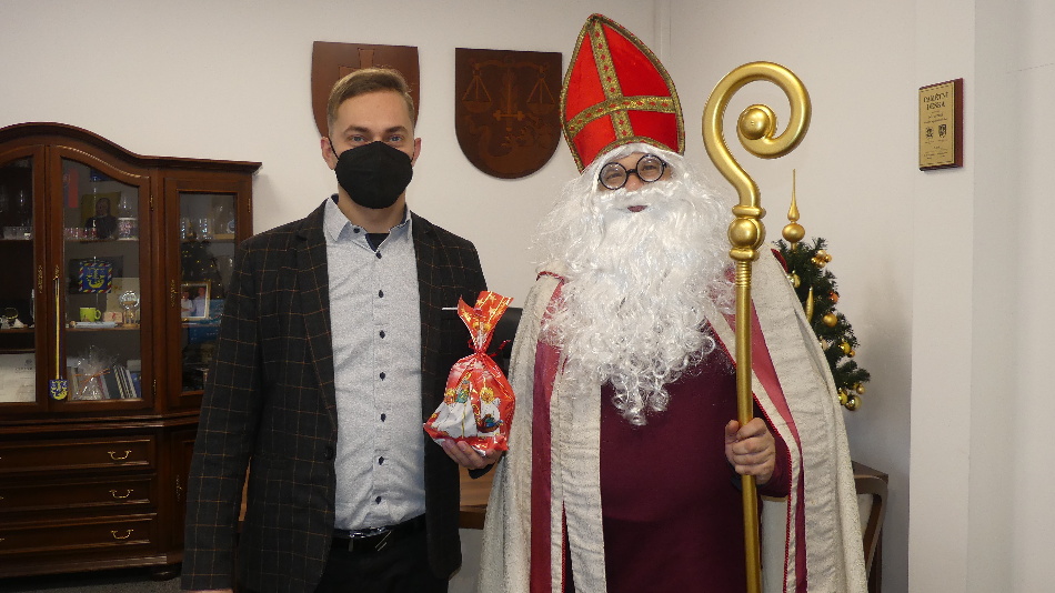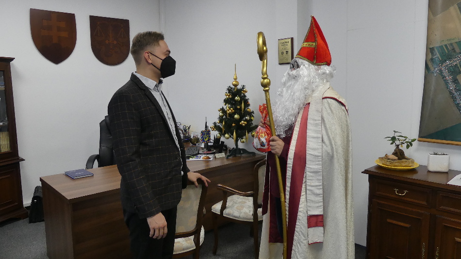 Stretnutie s Mikulášom sa uskutočnilo aj tento rok v obmedzenom režime. V Bánove však Svätý Mikuláš navštívil ZŠ s MŠ Bánov a obecný úrad, kde so sebou pre všetkých priniesol aj malé prekvapenie. Foto: M. Klobučník a M. Ohrádka