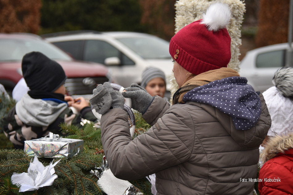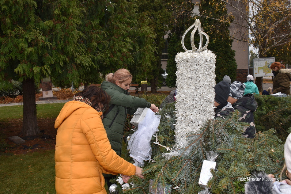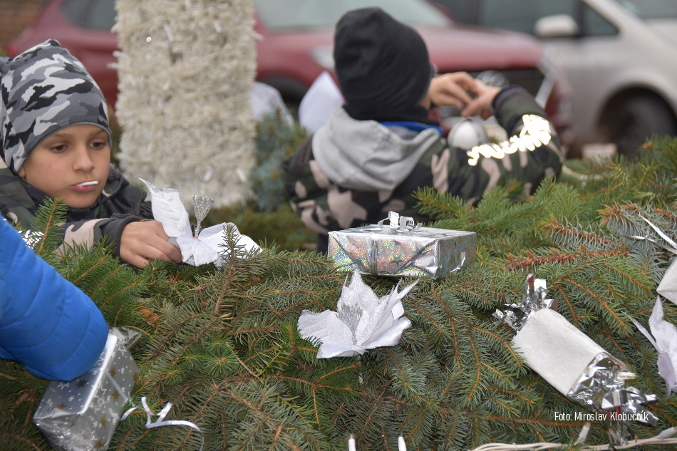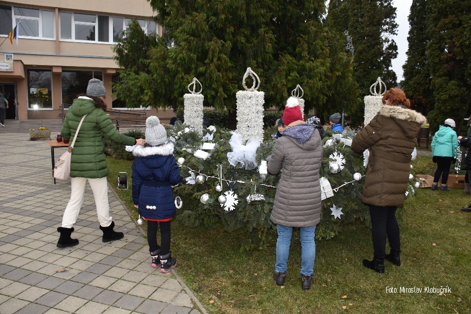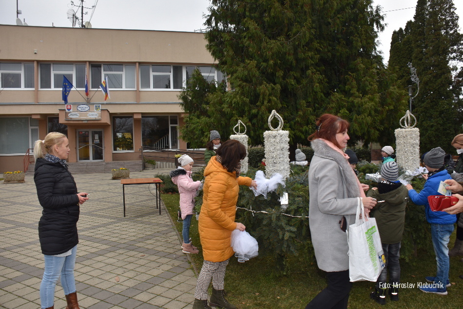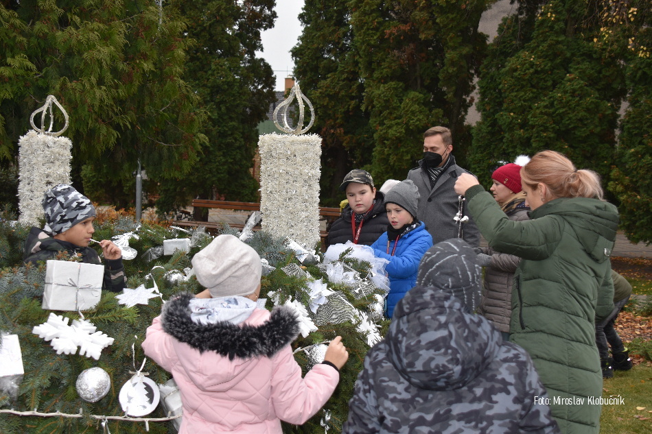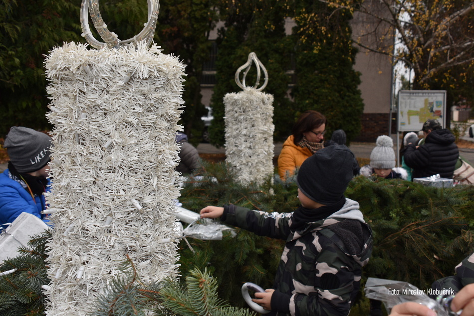 Adventný veniec v centre obce je každoročne kolektívnym dielom občanov. Po inštalácii konštrukcie a čečiny sme vo štvrtok 25.11.2021 pokračovali v zdobení venca, ktoré realizovali deti, žiaci a zamestnanci Základnej školy s Materskou školou v Bánove. Foto: M. Klobučník