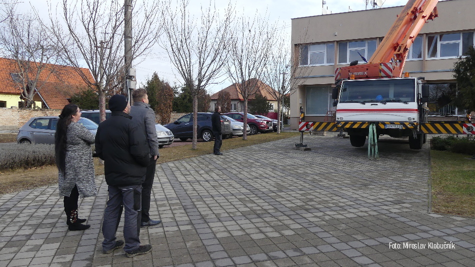 Počas mesiacov január a február sme v spolupráci s Ministerstvom vnútra SR a Okresným úradom v Nových Zámkoch, odbor krízového riadenia, nainštalovali nový informačný systém civilnej ochrany na streche obecného úradu a telocvični v športovom areáli. Foto: M. Klobučník a M. Ohrádka