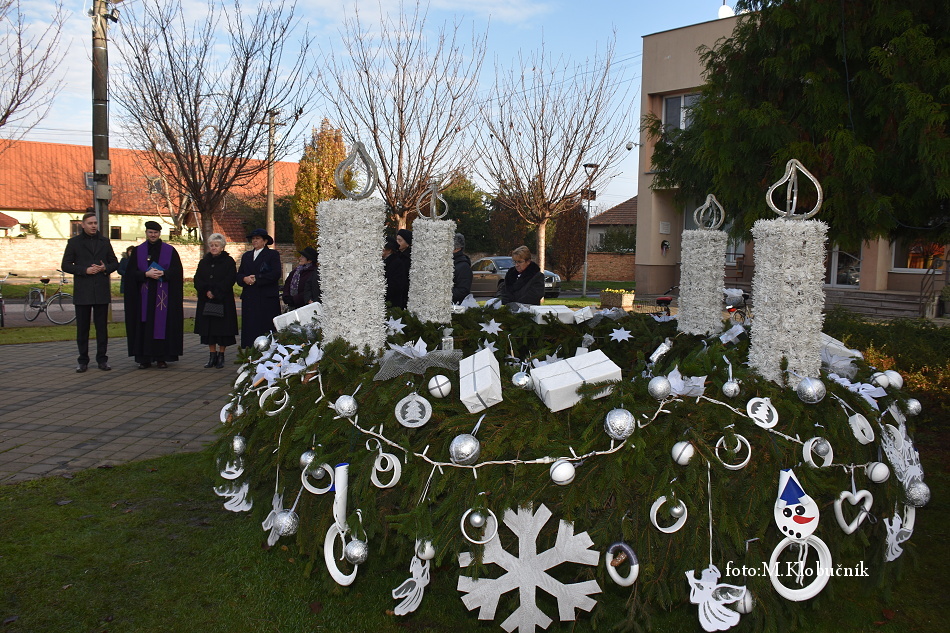 V nedeľu 27. novembra sa uskutočnilo požehnanie adventného venca pred obecným úradom. Veniec pripravili zamestnanci SMO Bánov, členovia klubu dôchodcov, deti, žiaci a zamestnanci ZŠ s MŠ Bánov. Veniec patrí všetkým občanom Bánova a je každoročne symbolom vianočného obdobia. Foto: M. Klobučník