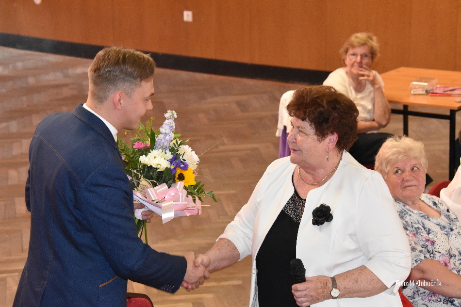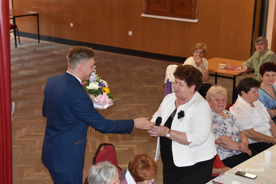 V nedeľu 8. mája sa v kultúrnom dome uskutočnila výročná členská schôdza Klubu dôchodcov Bánov. Počas schôdze bol pripravený aj kultúrny program s občerstvením. Foto: M. Klobučník