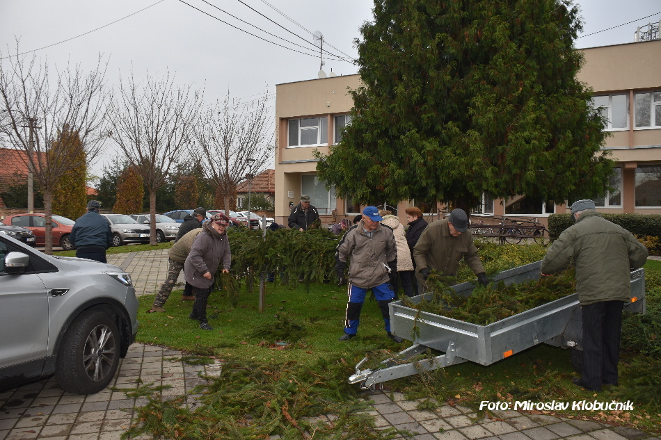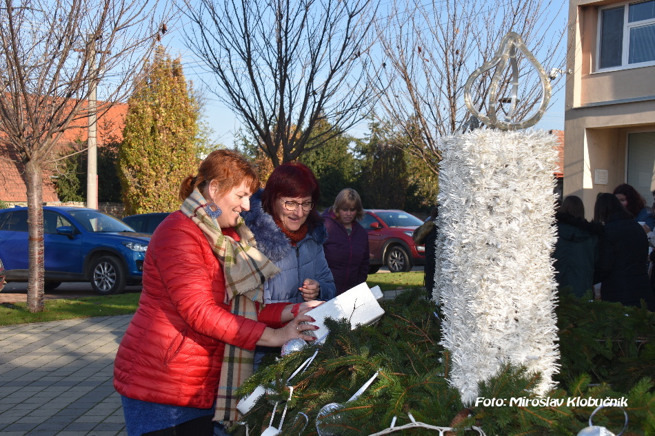 Adventný veniec v centre obce je každoročne kolektívnym dielom občanov. Inštaláciu konštrukcie zabezpečila SMO Bánov. Vo štvrtok 24.11. členovia klubu dôchodcov zabezpečili viazanie čečiny a v piatok 25.11. veniec ozdobili deti a žiaci zo ZŠ s MŠ Bánov. Foto: M. Klobučník