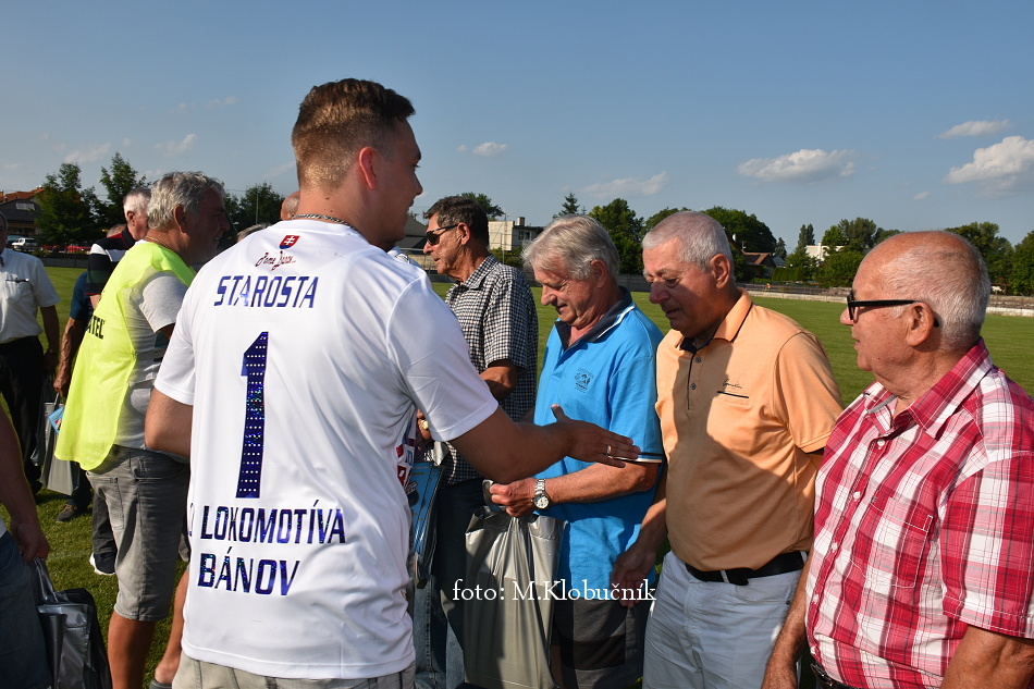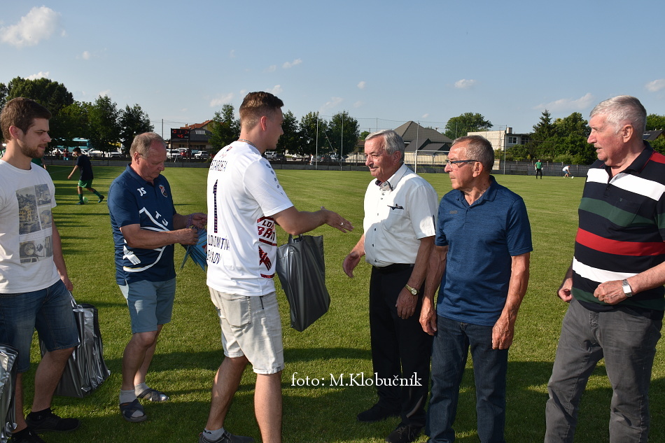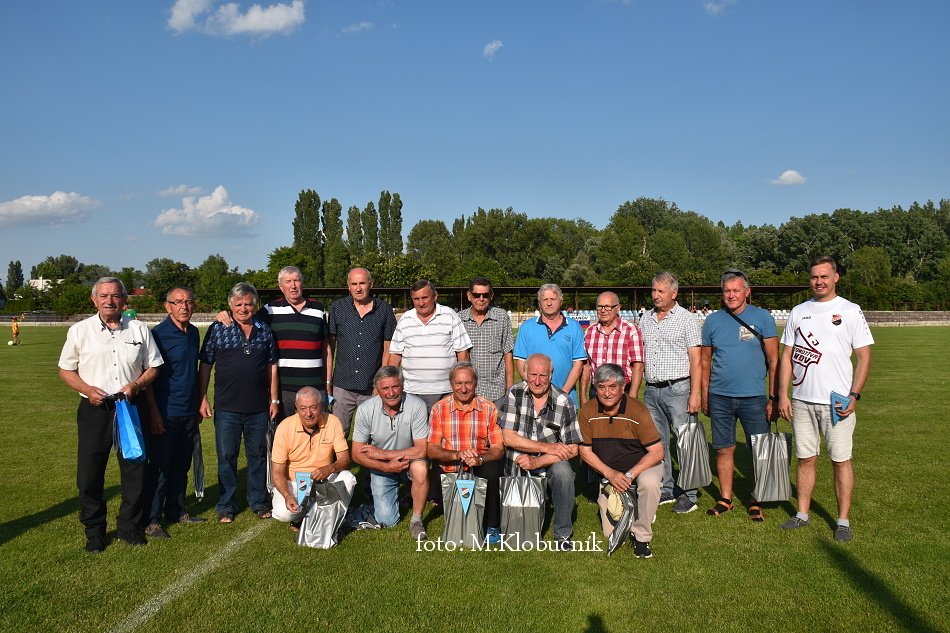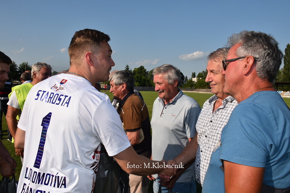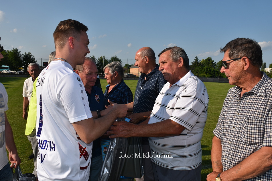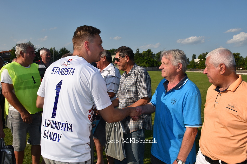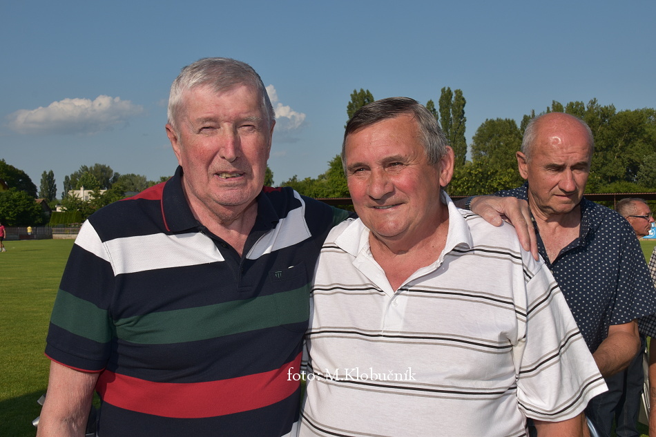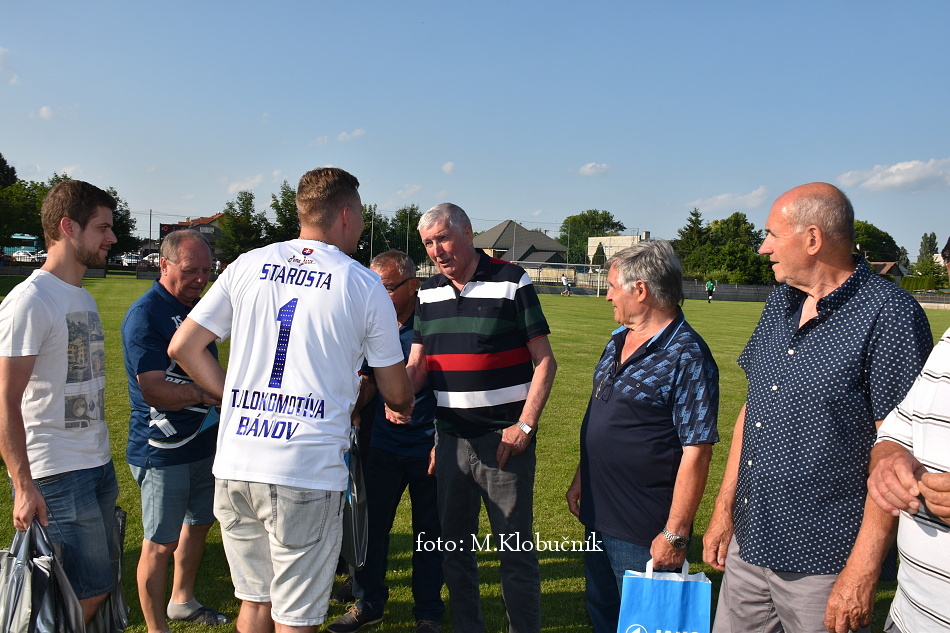 V nedeľu 18. júna sme si v polčasovej prestávke majstrovského futbalového zápasu mužov dôstojne pripomenuli 50. výročie postupu našich futbalistov do Majstrovstva kraja 1973. Po úvodnom slove sa bývalým futbalistom v príhovore osobne poďakoval starosta obce a odovzdal im dar. Foto: Miroslav K.
