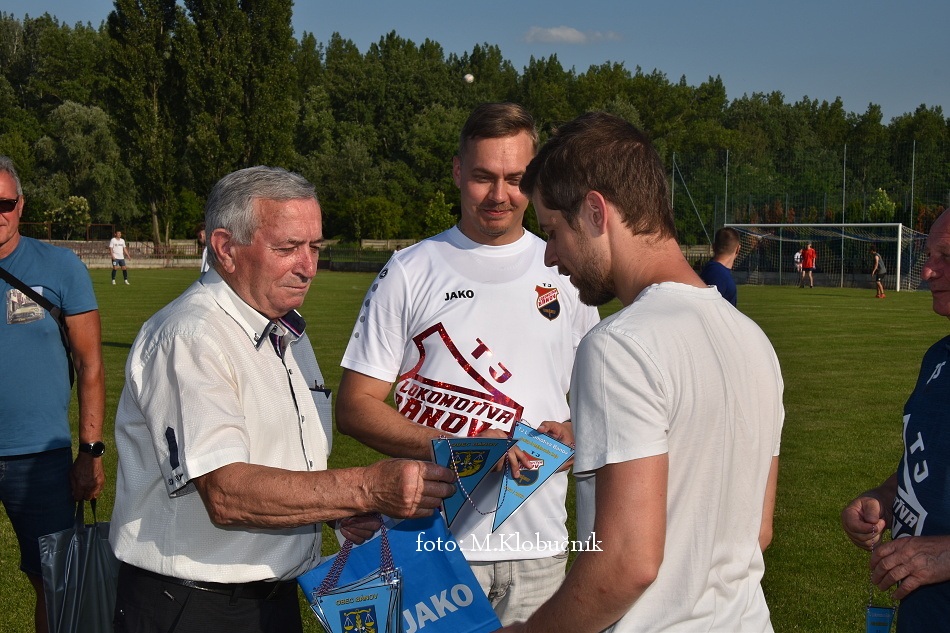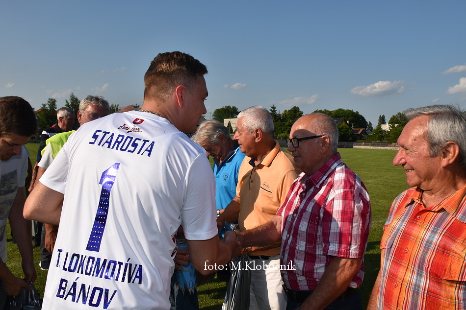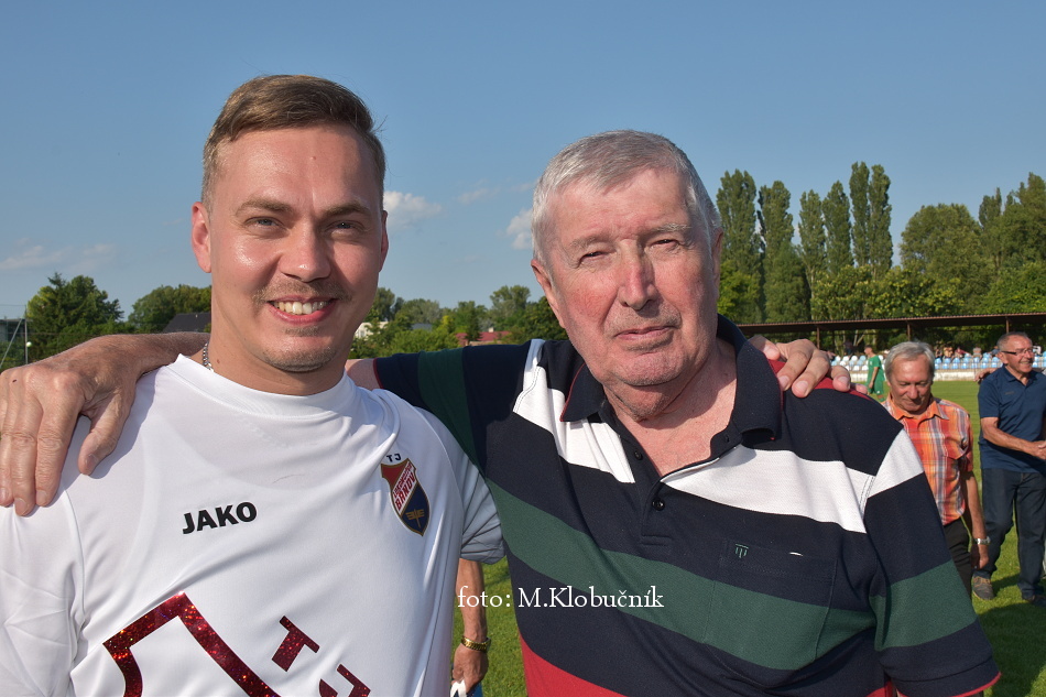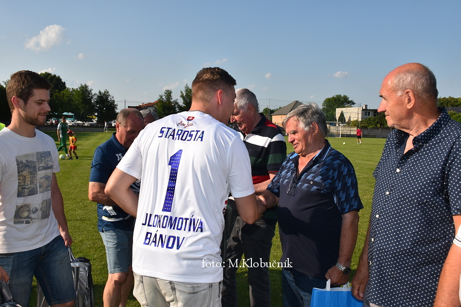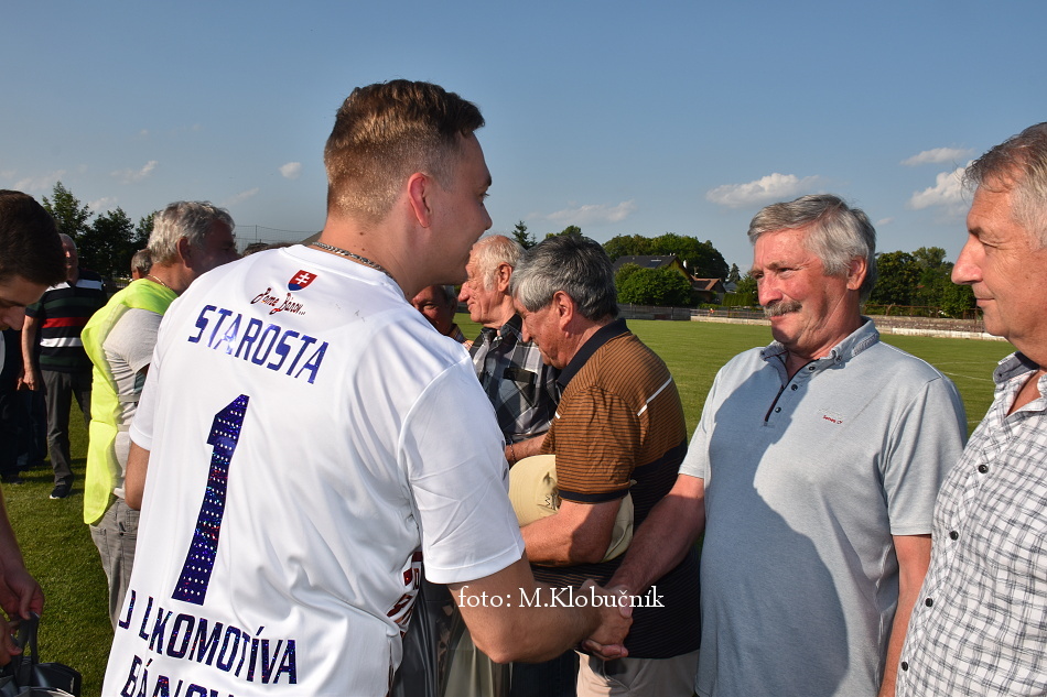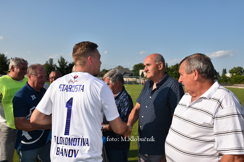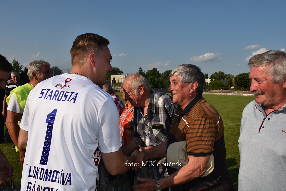 V nedeľu 18. júna sme si v polčasovej prestávke majstrovského futbalového zápasu mužov dôstojne pripomenuli 50. výročie postupu našich futbalistov do Majstrovstva kraja 1973. Po úvodnom slove sa bývalým futbalistom v príhovore osobne poďakoval starosta obce a odovzdal im dar. Foto: Miroslav K.