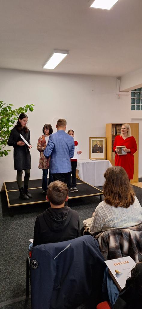 Súťaž a prehliadka v umeleckom prednese poézie a prózy sa uskutočnila 24. januára 2024 v priestoroch obecnej knižnice. Žiaci ZŠ s MŠ Bánov sa prezentovali v umeleckom prednese za čo im porota udelila vecné ceny. Foto: Veronika K.