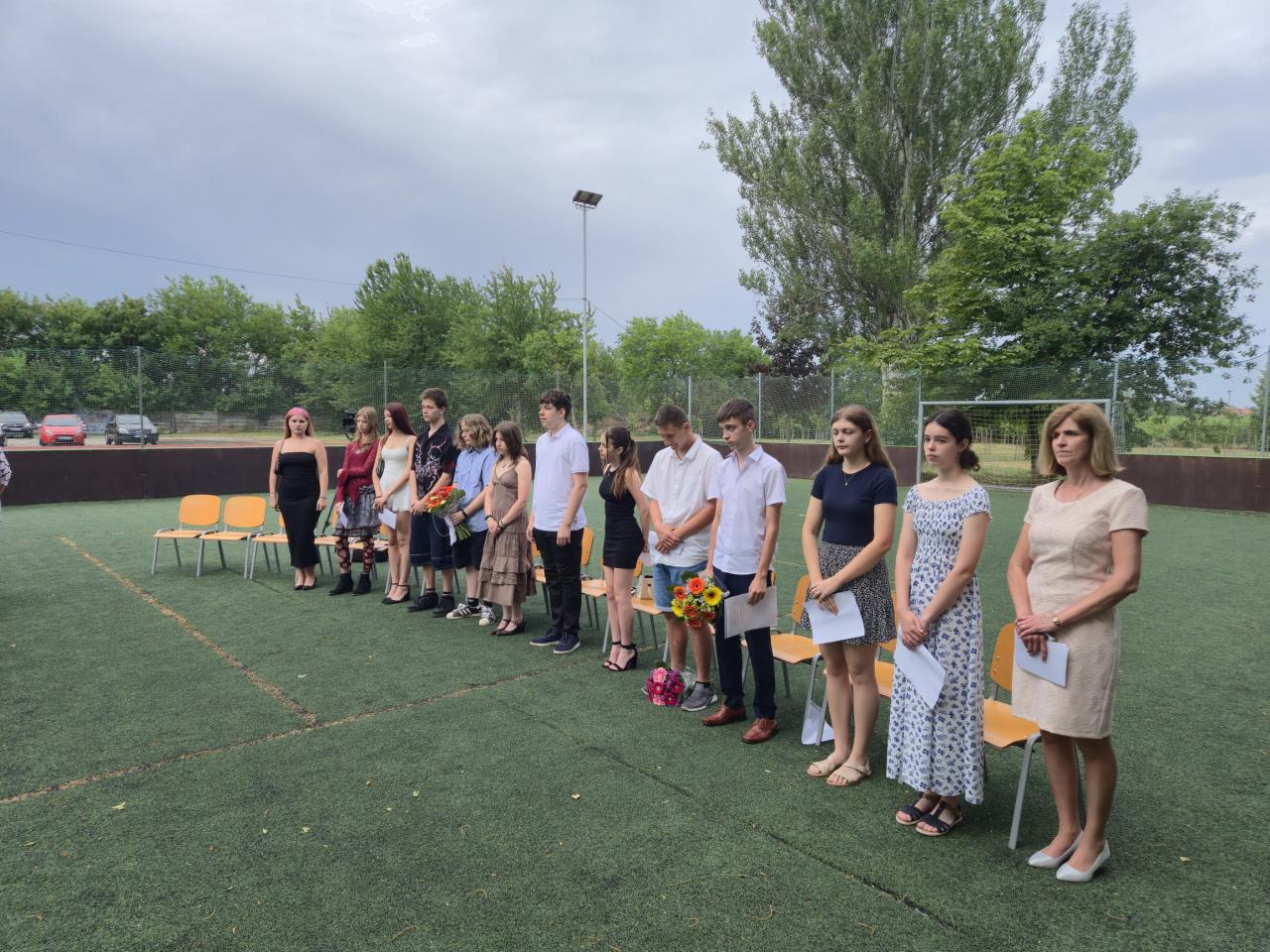 Slávnostné ukončenie školského roka 2024/2025 sa uskutočnilo v piatok 27. júna. Ukončenie bolo spojené s tradičnou rozlúčkou žiakov deviateho ročníka a najlepší študenti v rôznych oblastiach boli odmenení vecnými cenami. Foto: Adam R.
