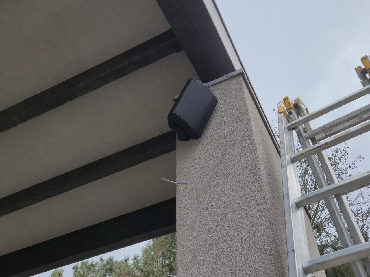 V piatok 5. decembra sme nainštalovali nové vonkajšie statické ozvučenie Domu smútku a nádeje Bánov ako aj priestoru pred zastrešením. Pribudol tiež nový mobilný bezdrôtový reproduktor s mikrofónom pre ozvučenie obradov v areáli. Foto: Adam. R.