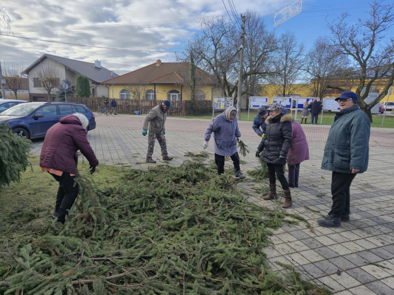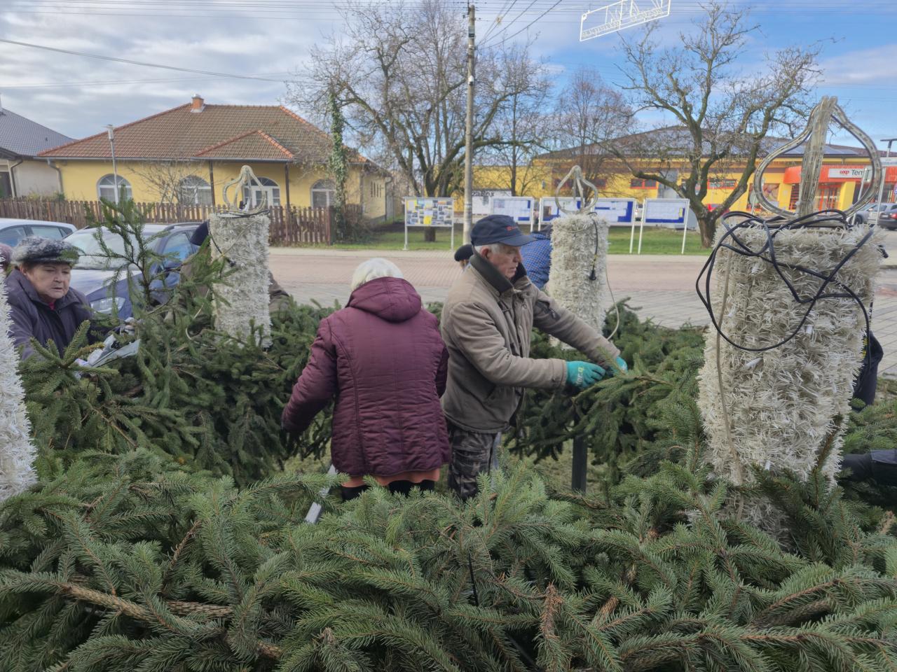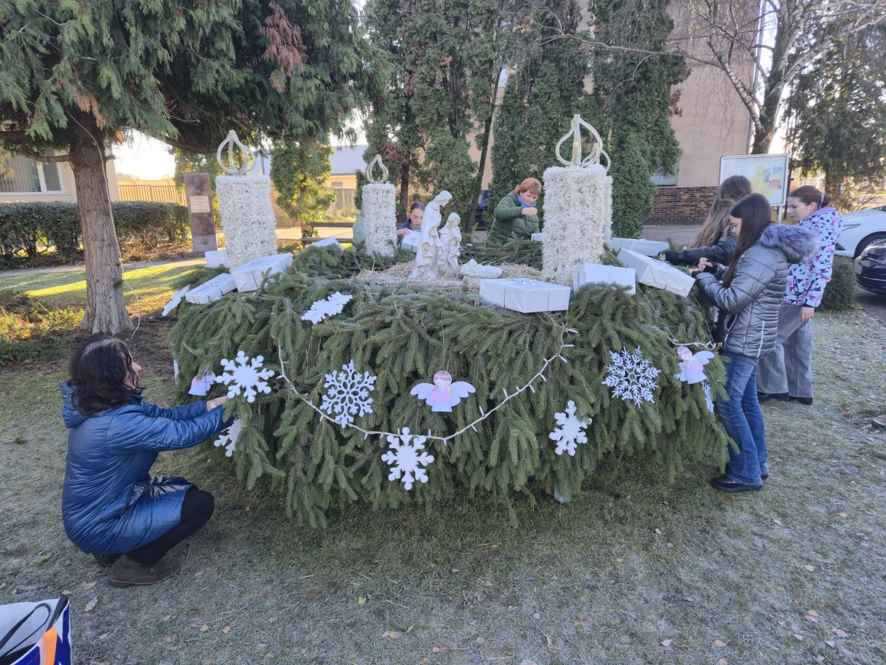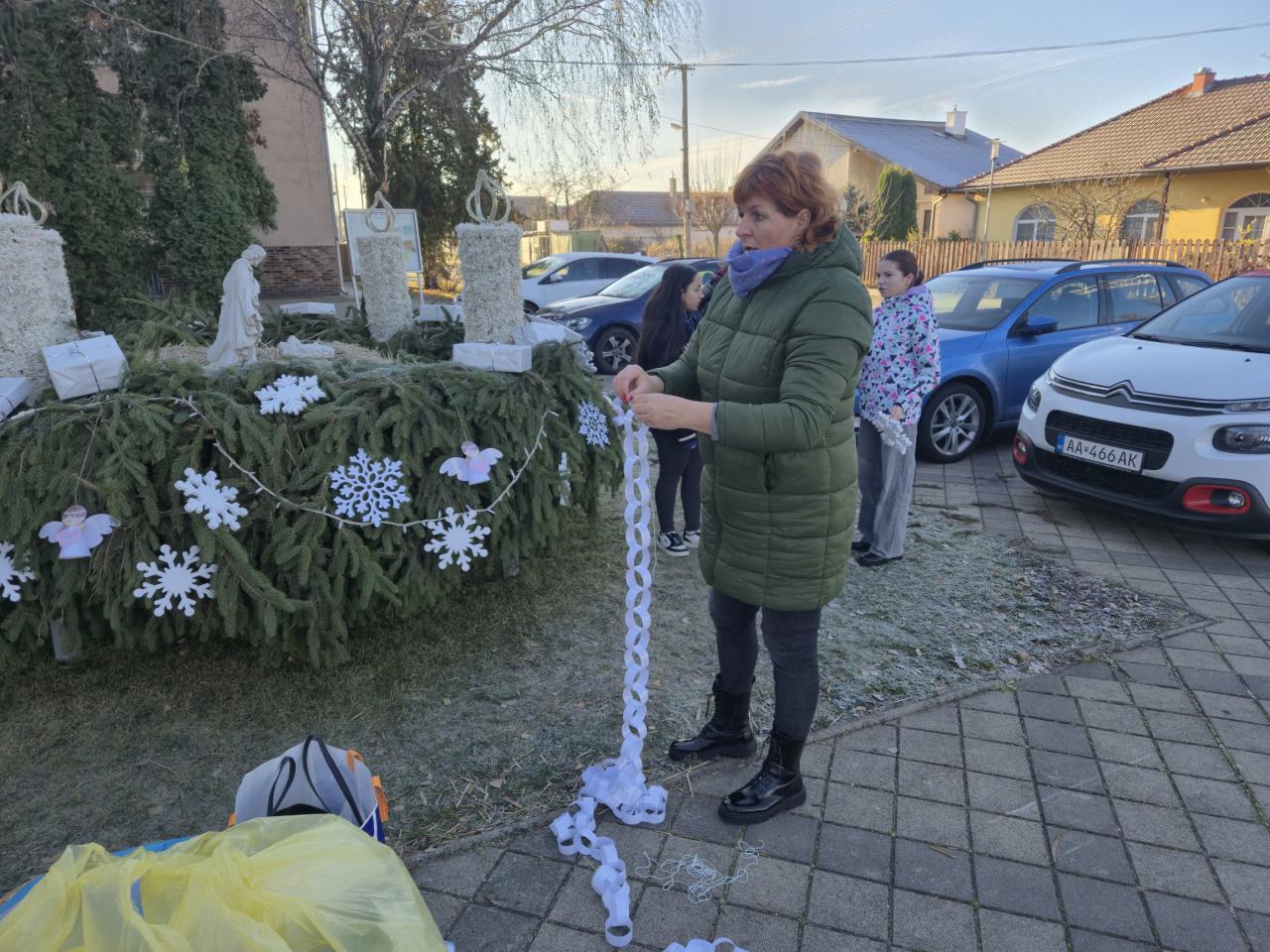 Adventný veniec v centre obce je každoročne kolektívnym dielom občanov. Inštaláciu konštrukcie zabezpečila Správa majetku obce Bánov. Viazanie čečiny zabezpečili členovia Klubu dôchodcov Bánov a Jednoty dôchodcov Slovenska ZO Bánov. Veniec ozdobili deti a žiaci zo ZŠ s MŠ Bánov. Foto: Adam R.
