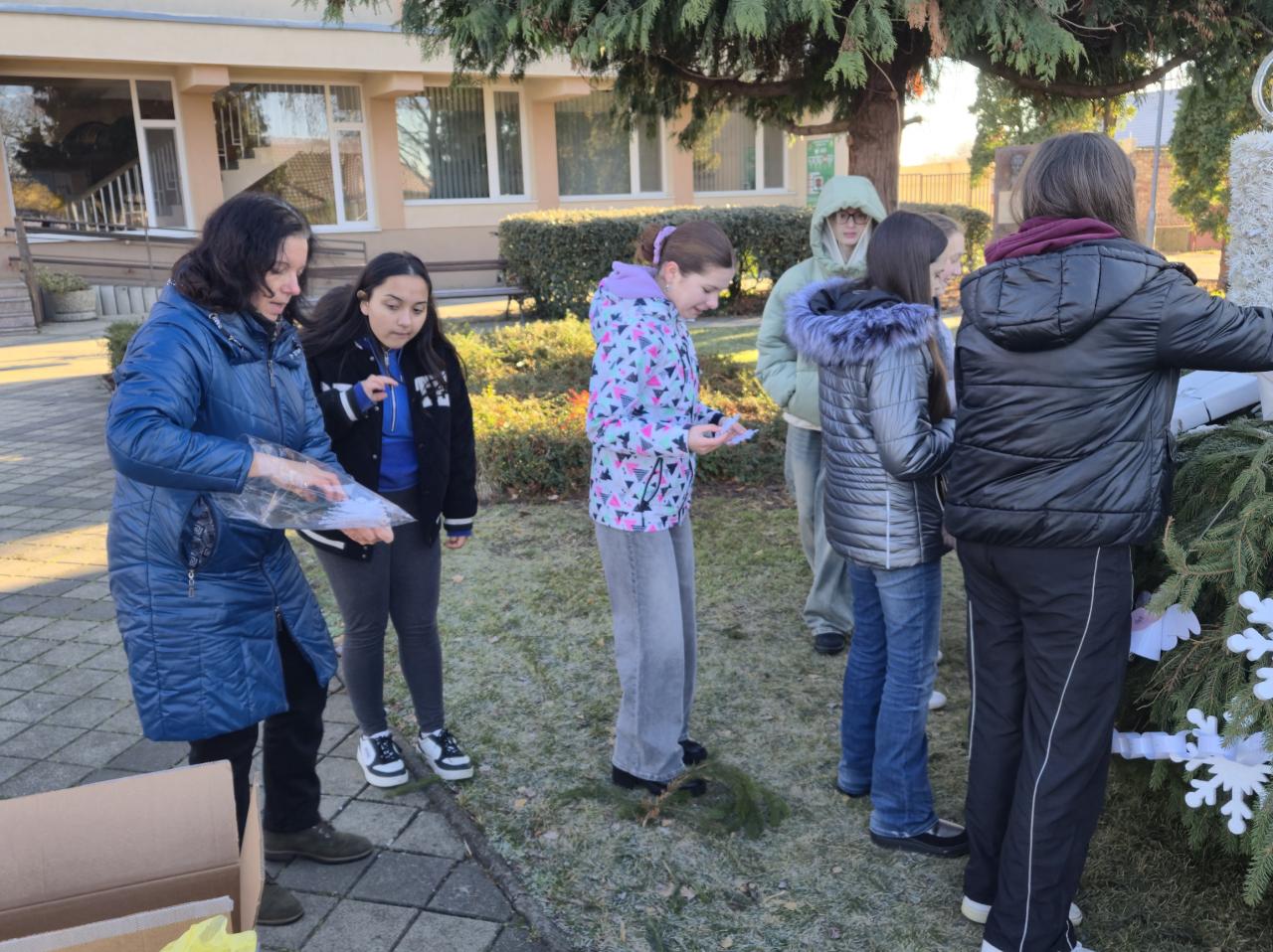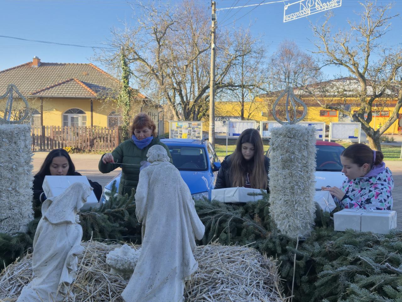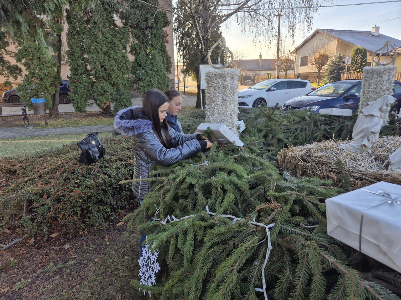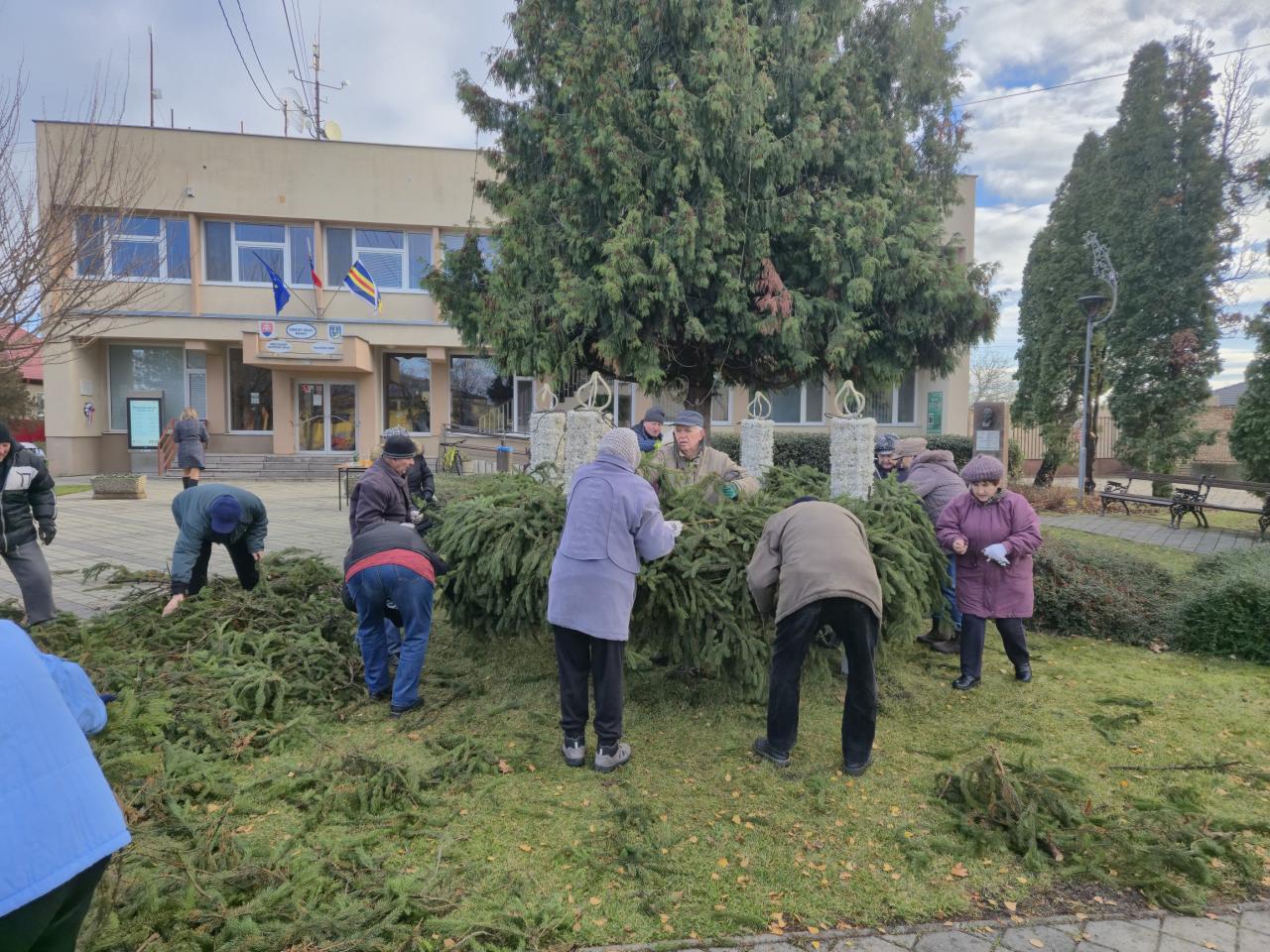 Adventný veniec v centre obce je každoročne kolektívnym dielom občanov. Inštaláciu konštrukcie zabezpečila Správa majetku obce Bánov. Viazanie čečiny zabezpečili členovia Klubu dôchodcov Bánov a Jednoty dôchodcov Slovenska ZO Bánov. Veniec ozdobili deti a žiaci zo ZŠ s MŠ Bánov. Foto: Adam R.