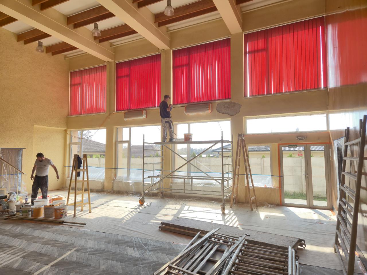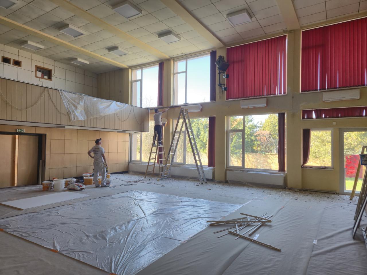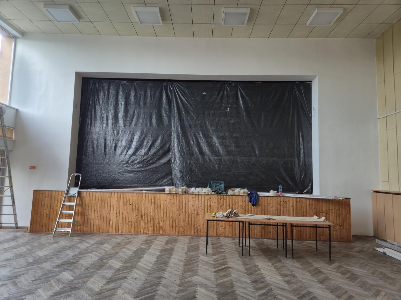 Počas mesiaca marec sme postupne zveľadili priestory divadelnej a tanečnej sály v kultúrnom dome. Realizovalo sa zasekávanie kabeláže, demontáž nepotrebných trubiek a zariadení, maľovka a inštalácia nových žalúzii. Foto: Adam R.