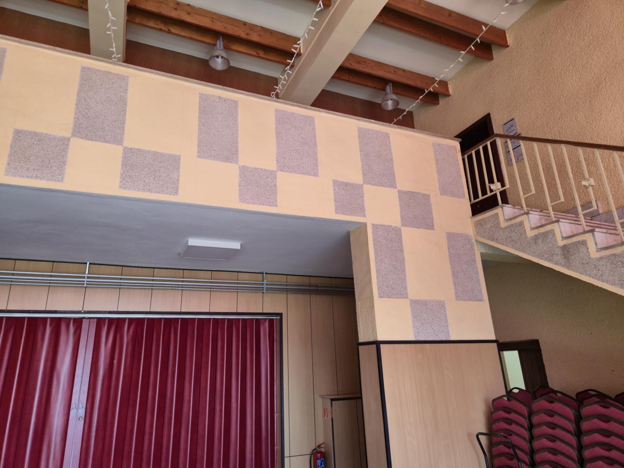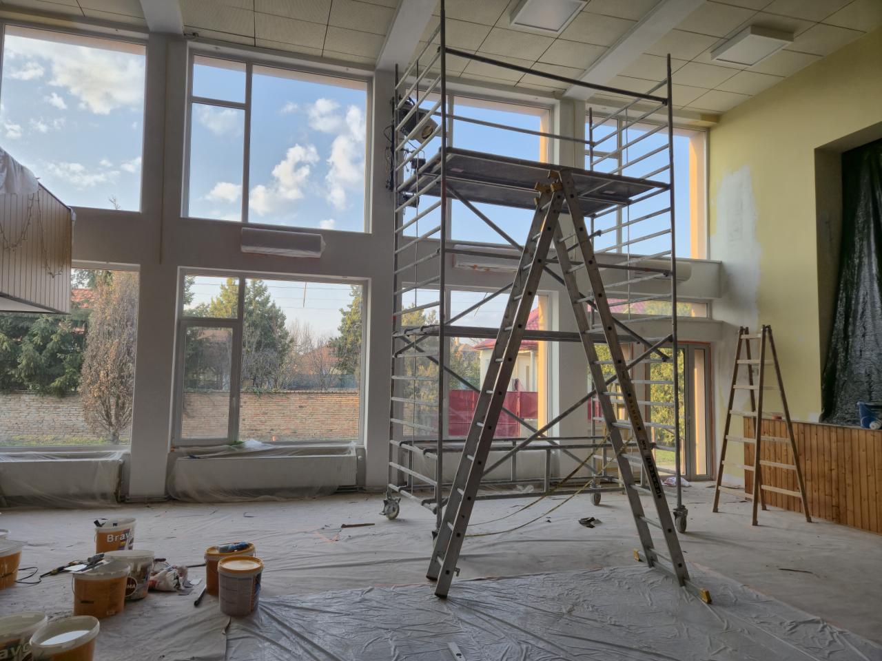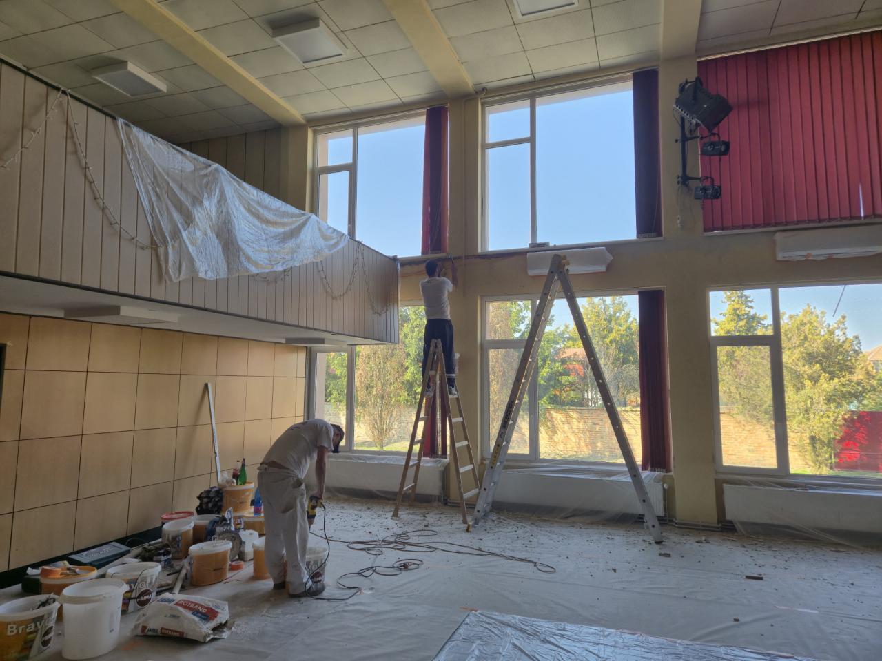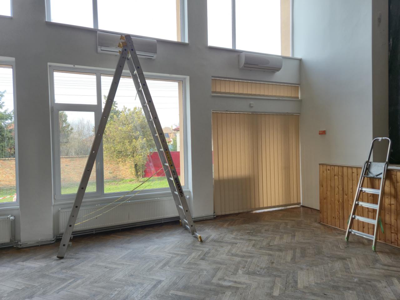 Počas mesiaca marec sme postupne zveľadili priestory divadelnej a tanečnej sály v kultúrnom dome. Realizovalo sa zasekávanie kabeláže, demontáž nepotrebných trubiek a zariadení, maľovka a inštalácia nových žalúzii. Foto: Adam R.